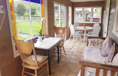 We invite you to stay at the Devcich Farmstead, experience the magic, relax and enjoy the breath taking scenery the river, bush and mountain ranges. The 3 brm homestead, nestled amongst the grapevines, is very welcoming and cosy, with a coal range and air conditioner in the dining room. Fully functional kitchen plus a BBQ. Mobile reception for Spark and Vodafone. The river is on the boundary good trout fishing and a great swimming hole nearby. Quite an array of exotic animals and guests are free to roam around the buildings but preferably not into the paddocks where the animals are unless accompanied by the host. Farm rule regarding gates, if its closed, close it. DOC bush walks to the Pinnacles further up the valley. History tour of the old buildings available on request. Access to the property is via a ford river crossing, in the event of heavy rain there will be no vehicle access. On these occasions there is a swingbridge access across the river and you will be met by a tractor to transport you and your bags to the house.