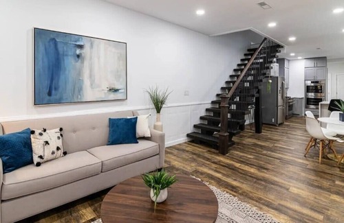 Enjoy a stylish experience at this centrally-located place. Welcome to your home away from home! This stylish and spacious 3-story retreat is the perfect escape for your group of up to 8 guests. With 2.5 bathrooms, everyone can get ready for the day without a hitch. The kitchen is equipped with a modern gas stove and a convenient double oven. The open layout seamlessly connects the kitchen to the dining and living areas, creating a social hub for your group to gather and make lasting memories.