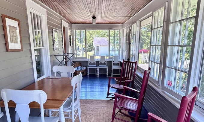 Enjoy sunny afternoons on our breezy glassed/ screened porch and watch the sun set over the Lake from the porch, the house, or our outdoor seating area!
