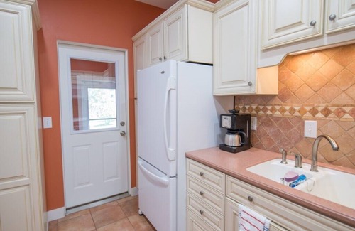The kitchen is fully stocked for everyday meal prep. Dishes, pots and pans, silverware, glass, etc. and a drip coffee maker is available for guest use. Additional kitchen items include ice maker, hand mixer,2 blenders, pressure cooker, and toaster. Also included: bed linens, bath towels, basic cleaning supplies, iron/ironing board, fans, and soaps (not personal soaps), and a starter set of paper products.