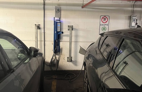 Electric car charging station on site