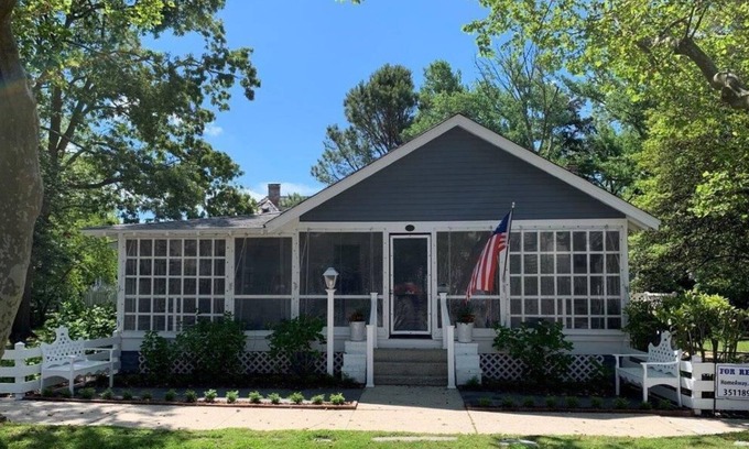Classic "Pines Cottage" Sleeps 10 Guests in 4 Bedrooms with 3 Full Bathrooms *The Oak Cottage and it's next door sister, The Pines Cottage, may be rented together.* The Oak Cottage is only 6 doors to the life-guarded beach and can accommodate 10 guests in 4 bedrooms. This 1926 historic cottage and back guest cottage have been remodeled and redecorated to provide modern comfort in a charming setting. The darling main cottage has 3 Bedrooms and 2 Full Bathrooms and the guest cottage has 1 large Bedroom and 1 Full Bathroom. Bedroom 1 has one Queen bed with Beach Bungalow linens and Bedroom 2 has one Queen bed with Laura Ashley linens. These 2 bedrooms share a private full bathroom with a tiled shower and vanity. Bedroom 3 is a Primary Bedroom with one Queen bed, Ralph Lauren linens and lamps, a TV and a private full bathroom with a shower. Bedroom 4 is in the separate, well loved, Guest Cottage and has two Full beds with beautiful bedspreads, matching curtains and a TV. The full bathroom has a tiled shower, an antique ball and claw soaking tub, a vanity with a gorgeous vessel sink and a private water closet. The Guest Cottage mini-kitchen has a granite island, decorator sink, microwave and under-counter refrigerator. The Living Room and Dining Room are open concept with a decorative fireplace and designer fabrics. There is a nice collection of books in the built-in cupboards. The Kitchen has been completely remodeled and is fully equipped with new Cafe appliances, granite countertops, lighting, lovely "Pistoulet" dishes, glasses, barware, Lenox flatware, cookware, Keurig and traditional coffee makers, pantry cabinet and more. The Screened Porch is one of the larger porches in Rehoboth Beach and wraps two sides of the cottage. Handsomely furnished for relaxation, it has plenty of comfortable wicker, rattan and wrought iron seating, decorator fabrics and a large TV. The Porch Dining Table seats 6 and there is an additional table that seats 4 for dining, playing games and putting puzzles together. Guests will enjoy having a stacked washer and dryer. The Deck leads from the Kitchen to a large furnished Patio with a dining table and 4 chairs, 2 benches, 2 Adirondack chairs, cocktail tables, and a hammock. Grill steaks on the Charcoal Grill in a private garden setting that is illuminated at night by landscape lighting. The double size, outdoor shower has 2 shower heads with hot and cold water. Situated on two and a half fenced lots (100' x 122'), the yard is huge. The Oak Cottage and the Guest cottage have central heating and air conditioning. The main cottage has real hardwood flooring and the guest cottage has tile flooring. Rentals are available for as few as 4 nights in the Spring and by the week in the Summer, Friday to Friday, with Check-in at 4:00 pm and Check-out at 10:00 am. There is off street parking for 2 cars and 2 seasonal parking permits are provided for on street parking for rentals between Memorial Day and Labor Day.