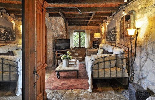 ***Please note that the age of this three-level stone structure makes for unlevel stone floors and a narrow stairway leads you from the lower living and bathroom level to the second level bedroom. Some guests may find these stairs more difficult to manage at night or in general depending on physical abilities.***