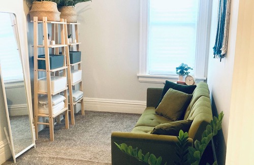 Cozy and serene, this restored 1880s worker's cottage is the perfect place to explore Chicago. You'll have the entire home, which features spacious living and dining rooms, galley kitchen with stainless steel appliances and all the necessary tools for cooking, an office and sleeping accommodations for up to 3 guests. Remote workers will enjoy the upstairs office space with a stylish bookshelf backdrop for your zoom meetings! The neighborhood is part of Pullman National Historical Park, so while you’re in town, visit the free museum and visitor center just a few blocks away. Hop on the Metra or nearby highway to get downtown for all the other major tourist attractions. Or settle in with one of the many books, games or puzzles to choose from. This house is available for longer stays only.