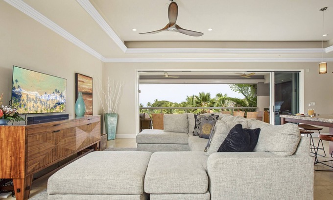 This residence has been given the Hawaiian name "Wailea Kapili", which translates to "a Wailea Gathering." It is the perfect accommodation for gathering with friends and family to enjoy the beauty of Maui. This Ho\'olei Residence is a spacious 2,426 square foot three bedroom, three and half bath villa sleeps eight guests comfortably. The close proximity to the sprawling pool complex with a zero-entry pool, waterfall, hot tub, and dining pavilion; as well as a state-of-the-art fitness center makes this vacation residence highly desirable by discerning guests.