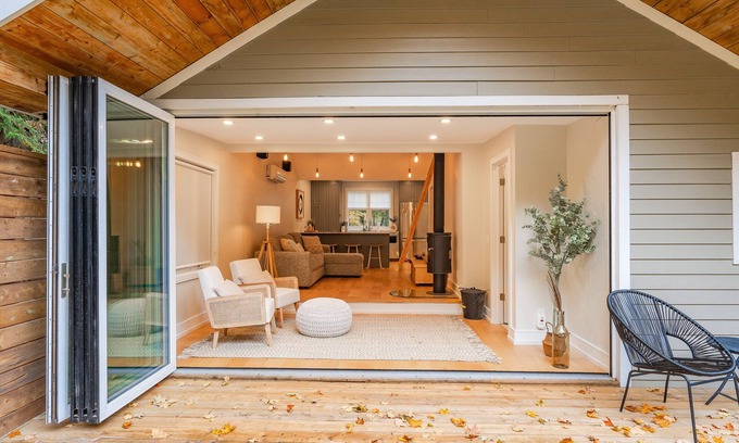 Needing an unforgettable escape? This cozy cottage is nestled in nature along the Nottawasaga river and has an incredible outdoor fire-pit with hanging egg chairs. Large panel doors that fully open for picture worthy views, lots of natural light and peaceful sounds of water running. Lots of hiking trails near by for exploring or just wanting to relax by the river, this is the spot. Cozy indoor wood burning fireplace, heated floors, running water, AC, Wi-Fi, full kitchen and washer and dryer.