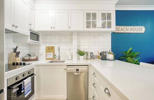 Freshly renovated with an elegant, coastal palette, this one-bedroom stay offers the best of beachside living, boasting a shared pool and BBQ area with a comfortably furnished alfresco setting where you can soak up the sea breezes and catch a glimpse of the ocean.