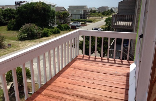 Fantastic views from 4 decks. Backs up to marshland, Intercoastal Waterway - watch the boats go by from the multi-level back decks. Half block from beach with semi-private access (no public access there means less crowd)- undeveloped lots in front provide for great ocean views and sounds. See the ocean and listen to the waves crash as you relax on either of the two front decks. All decks are furnished, recently painted/stained, matted for cooling and lower decks and patio provide shade if desired.