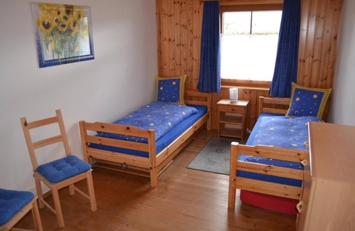 The spacious non-smoking flat on the ground floor includes a fully equipped kitchen, dining and living room, shower/WC, as well as two bedrooms with 2 beds each for a total of 4 persons (cot for a small child up to 2 years is also available). A 5th person can stay in an extra bed (to be paid for on site / infant up to 2 years stays free of charge in a cot).