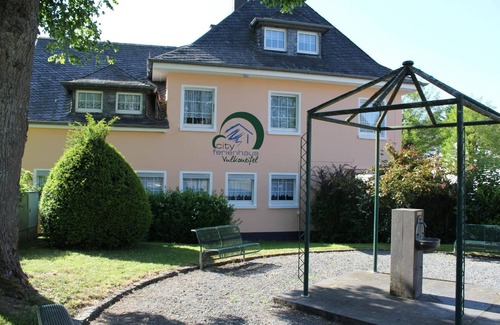 Vulkaneifel holiday flat in the City Ferienhaus Vulkaneifel The Vulkaneifel holiday flat is bright and modernly furnished. It is located in the lively centre of the beautiful holiday resort, the small town of Daun. The outdoor area of the house includes a 45 square metre terrace with garden furniture and a barbecue. The terrace borders the busy street to the front and a small park to the side. Due to the central location of the house (road traffic), the terrace is enclosed by a fence and hedges. The separate entrance to the house leads into the house from the street via the terrace. New: with large sauna for exclusive use!