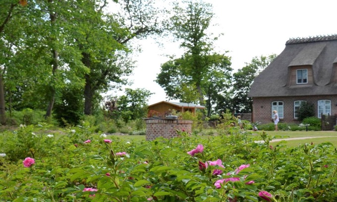Look forward to a very special holiday apartment on a former farm in a secluded location. The very spacious and idyllic property is only 2 kilometers from the Baltic Sea. It consists of a charming farmhouse and a unique barn. The buildings are surrounded by many gardens that invite you to relax and create the feeling of being connected to nature. The 110 square meter holiday apartment is located in the farmhouse, which has been completely renovated and has a beautiful thatched roof. The apartment "Kos" was furnished in Norwegian style with great attention to detail and offers plenty of space to slow down. The apartment also impresses with a modern kitchen for cooking together, a sauna for relaxation and cozy bedrooms. Just see for yourself, we look forward to seeing you!