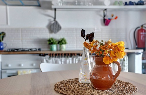 The holiday apartment "Eco Casa Salitre" is located in Tabayesco and boasts a beautiful view of the Atlantic. The 50 m² property is part of Casa Azul with 2 rentals and the owner's house, and consists of a living room, a fully-equipped kitchen, 2 bedrooms, and 1 bathroom, and can accommodate 4 people. On-site amenities include high-speed Wi-Fi (suitable for video calls), a fan, a washing machine, and a selection of children's books and toys. A high chair is also available, and a baby cot can be provided for a fee. A washing machine is situated in the common area.
