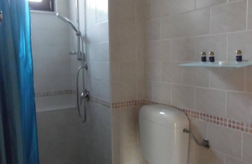 The studio with a gallery has a living room-kitchen and a sofa bed for one adult or two children (120 x 190cm), another sofa, a TV with satellite channels, a dining table and a brick-built kitchen unit with a fridge, gas stove and mini oven. The bathroom has a shower. Stairs lead to the open gallery with an elegant, antique double bed (160 x 190cm). The studio has air conditioning (cool/warm). Bed linen, towels, kitchen towels and crockery are provided. Baby cot available on request and at no extra cost.