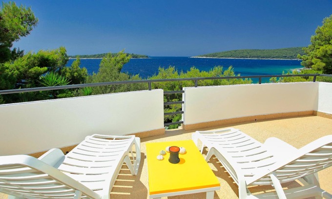 This house with its two modern and spacious holiday apartments is on the first row right by the beach on the south side of the island of Korcula. You only have to go through the garden to jump into the sea. The house boasts a location in beautiful nature, by the crystal clear sea, surrounded by further holiday property. An ideal place for water enthusiasts and sun worshippers.