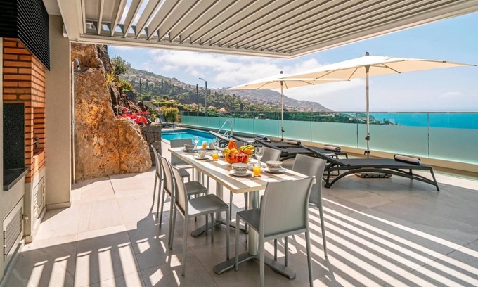 It is difficult to convey fully the wonderful features and attention to details of this superb 4-bedroom luxury villa set above the town of Funchal and with spectacular views of the sea.