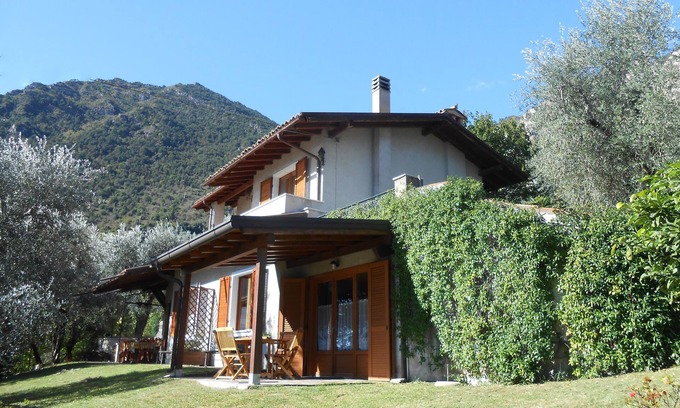 Apartment in a private house built on 2 floors, all with direct access from the garden. 2 rooms for 2 to 5 people, from 40 to 50 square meters. Distance from the beach about 200 m. (with access road) and 800 m. from the center. Shops and restaurants are nearby. Sunny, quiet and panoramic location with a beautiful view of the lake, in the middle of an olive grove and directly managed by the hospitable owner. Spacious garden with umbrellas and loungers, barbecue facilities, swimming pool m. 7 x 3, closed parking, free wi-fi ....