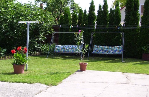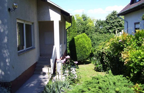 The holiday apartment is furnished in a typical country style. The property is located in a residential area. Also due to its quiet and sunny location the domicile is popular. Available for use: barbecue facilities, terrace, garden furniture and Hollywood swing.LocationSiofok. The holiday apartement is located on a 600 sqm garden plot with meadow. The landlord lives permanently in the house, but uses a seperate entrance. The apartment BAL SIO 289 (9 persons) located in the attic. Access is via a side road. Parking is available on the property. SpecialFacilities: internet access (WLAN). TV reception takes place via satellite.For your safety, the accommodation is equipped with smoke detector. Dogsallowed, EUR 3.00/pet per day. DistancesShopping 300 m, restaurant 80 m, town center 700 m. Spa and Wellness 200 m. Sió Medical Health Centre 250 m. Sports center 300 m. In summer: Balaton 1000 m in Siofok (beach 1000 m in Siofok featuring meadow). tennis in Siofok 300 m. DivisionHoliday apartment, 1 floor, 4 rooms (including 3 bedrooms), 136 sqm, in total 7 beds (including 1 additional bed). Room Living room with sitting area and TV. 2 bedrooms each with 1 double bed. Bedroom with 1 double bed and 1 additional bed. Kitchen with gas stove (4 flames), oven, fridge, microwave, coffee machine and access to the terrace. Bathroom with bathtub. Separate toilet with WC. Terms of lease and pricesIncluded in the priceinternet access, parking place, electricity, gas, water, bed linen, Wireless Internet access. Side costs-Costs on the spot:/Obligatory:local tax by local tariff.Deposit:EUR 150,-/object