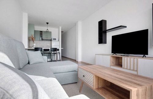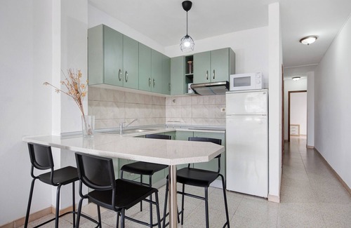 The holiday apartment "La Esperanza" is located in Gran Tarajal and boasts a beautiful view of the Atlantic. The 60 m² property consists of a living room with a sofa bed for one person, a well-equipped kitchen, 2 bedrooms and 1 bathroom and can accommodate 4 people. Available amenities include a Smart TV with Netflix, Wi-Fi, air conditioning and a washing machine. A crib is available under request.