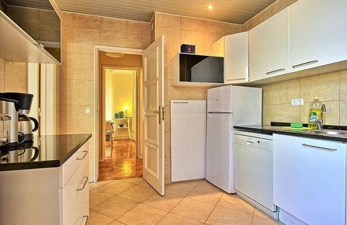 Inside, the apartment is prepared to ensure a hassle-free stay. Key features include a washing machine for private use, ensuring your wardrobe remains fresh throughout your stay. The kitchen is fully equipped with a dishwasher, an electric kettle, and a filter coffee machine, perfect for preparing meals or a quick coffee before heading out to explore the city. Cooling fans in each room provide relief during the warmer months, creating a comfortable and pleasant indoor environment for all guests.