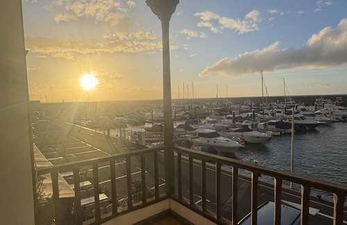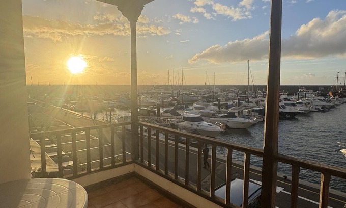 Los Gigantes Port. Apartment with beautiful views on the front line of the marina, has a balcony, two two bedrooms with double beds and two single beds, two bathrooms, kitchen and large living-dining room. Cozy and quiet atmosphere. Temporary rental for a minimum period of 3 days, excellent location, with a beach about 50 meters, supermarkets, restaurants and shops. More information contact without obligation. Beach about 50 meters and private pool 100m.