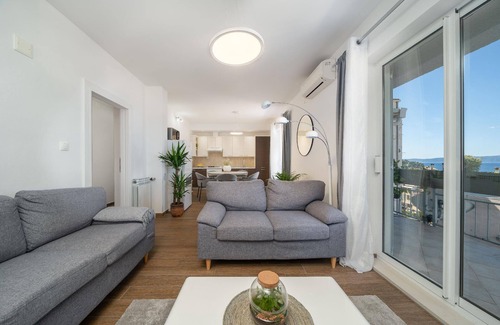 Apartment Ana is located in the city center, 350 meters from the beach. The apartment is located on the fourth floor of the building and offers a breathtaking view of the sea, city center, the islands of Brac and Hvar and the mountain Biokovo. It consists of three bedrooms (one with its own balcony), two bathrooms, living room and kitchen with dining room. The apartment has all the necessary equipment for a pleasant holiday (FHD Smart TV, DVD player, internet, 3 air conditioners, washing machine, dishwasher, microwave, coffee maker, kettle, toaster, iron, etc.). Additional comfort is a private parking space in the garage for this apartment. Nearby there are various tourist attractions, restaurants and plenty of entertainment for children and adults.