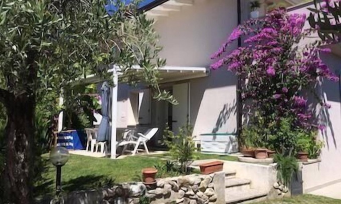 This holiday flat in a villa is located in a beautiful natural setting in Manerba del Garda, Lombardy, in a quiet residential area only 200 metres from the lake. A small paradise surrounded by nature.