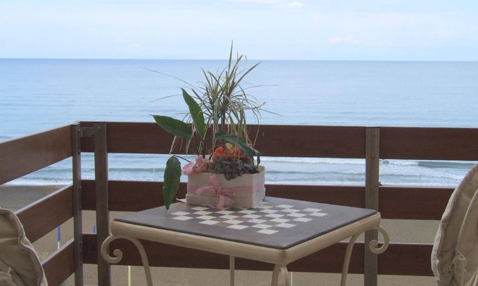 Rododendro is an elegant flat located by the sea in Castagneto Carducci. The accommodation consists of a living area with a double sofa bed and kitchenette from which you can access a terrace equipped with table and chairs offering a magnificent open view of the sea. Continuing we find a bedroom with a double bed and a single bed (the double bed can be divided into two singles) and a bathroom with shower and bidet. The flat is on the third and last floor of a small building with lift and can be connected with the Palinuro studio (on request). Rododendro is equipped with every comfort and has heating and air conditioning. Its location is excellent and there is direct access to the beach through a door on the ground floor. The accommodation does not have private parking in the immediate vicinity but it is possible to use a fenced parking space located 300 metres from the flat on request.