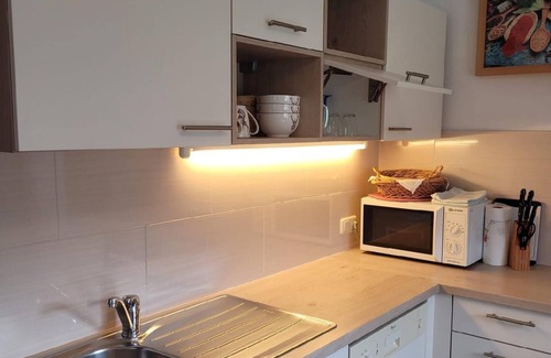 Further equipment: bed linen, bath towels, hand towels, table linen, tea towels, cable TV/SAT TV, electric cooker with oven, microwave, dishwasher, coffee machine, toaster, fridge/freezer, crockery, cookware and cutlery, wardrobes, garden furniture on the private terrace (south-facing, barbecue facilities), car parking space.