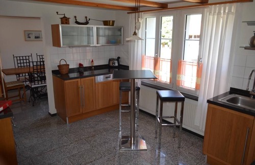 The flat is lovingly furnished to ensure you have a comfortable stay. In the cosy living room you will find satellite TV and radio as well as a Swedish stove and free WLAN. There is a bedroom with a double bed and another bedroom with a single bed and a double bed (under a sloping roof) on the open gallery via a staircase, an extra bed is available. The kitchen leaves nothing to be desired - from oven, dishwasher and fridge with freezer compartment to filter coffee machine and Nespresso capsule machine to a kettle, toaster, hand blender, microwave, raclette machine and cheese fondue dishes.