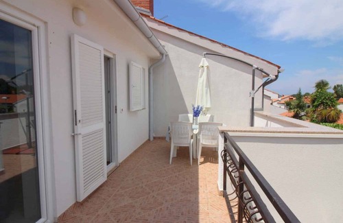 The holiday apartment is located in a single-family home built in 1989, was renovated in 2014 and is furnished in a functional and typical country style. The property is located in a residential area, on the outskirts. Also due to the view over the sea from the property the domicile is popular. Available for use: barbecue facilities, terrace and garden furniture.LocationPoreč. The holiday apartement is located on a enclosed garden plot with trees, bordered by a fence. The landlord lives permanently in the house, but uses a seperate entrance. The holiday flat IST POR 250 (2 persons) is located in the same house Access is via a side road (asphalted). Parking (for 1 car) is available on the street in front of the house. Specialair conditioning.Facilities: internet access (WLAN) and washing machine. TV reception takes place via satellite. Dogsallowed, EUR 8.00/pet per day. DistancesShopping 300 m, restaurant 200 m, town center 800 m. Sports facilities 400 m In summer: Adriatic Sea 400 m (beach 400 m featuring gravel, rocks and bathing plateaus). mini golf, diving each 400 m. boat rental in Brulo Sport 400 m. tennis in Diamant 250 m. golf in Umag Savudrija 35 km. DivisionHoliday apartment, 1 floor, 3 rooms (including 2 bedrooms), 60 sqm, in total 5 beds (including 1 additional bed). RoomThe entrance to your holiday apartment is located on the 1st floor
