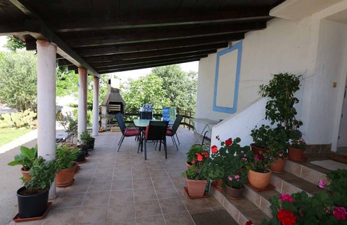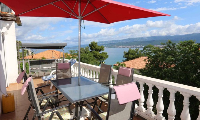 The holiday apartment is located in a detached single-family home and is furnished in a typical country style. Also due to the view over the sea from the property and its quiet location at the water the domicile is popular. Available for shared use: parasol, barbecue facilities, terrace and garden furniture. 2 balconiesLocationŠilo. The holiday apartement is located on a 100 sqm open garden plot with shrubs and trees. The landlord lives permanently in the house, but uses a seperate entrance. In the same house there are holiday flats KRK SIL 228 (7 persons) and KRK SIL 229 (3 persons) Access is via a side road (asphalted). Parking (for 1 car) is available on the property. Specialair conditioning.Facilities: internet access (WLAN) and washing machine. TV reception takes place via satellite. Dogsallowed, EUR 15.00/pet per day. DistancesShopping 200 m, restaurant 150 m, town center 100 m. Malinska: bank 15 km and discotheque 15 km. railway station, cinema each 50 km in River. Šilo: pharmacy 250 m and doctor 300 m. Main road 50 m. In summer: Adriatic Sea 60 m in Šilo (beach 60 m in Šilo featuring bathing plateaus). Šilo: fishing 100 m and diving, boat rental, boat launch each 500 m. DivisionHoliday apartment, 1 floor, 4 rooms (including 3 bedrooms), 100 sqm, in total 7 beds. RoomThe entrance to your holiday apartment is located on the mezzanine floor, is covered and leads over an external staircase directly into the hallway with doors to all rooms. Living room (20 sqm) with sitting area, TV, dining area (7 seats) and access to the balcony (20 sqm, garden furniture, 1 table, 7 chairs). Bedroom (20 sqm) with 1 double bed and access to the balcony (20 sqm). Bedroom (20 sqm) with 1 double bed and 1 single bed. Bedroom (20 sqm) with 1 double bed. Cooking nook in the living room (10 sqm) with gas stove (3 flames), electric stove (1 plate), oven, extractor hood, fridge (icebox) and coffee machine. Bathroom (5 sqm) with washing machine, shower, 1 washbasin, WC and window. Bathroom (5 sqm) with shower, 1 washbasin, WC and window. Terms of lease and pricesIncluded in the priceinternet access, dish towels, air conditioning, parking place, electricity, gas, water, final cleaning, bed linen, Wireless Internet access. Side costs-Additionally(Payable when booking)/additonal fee for short-term stays (less than 4 nights) obligatory 30% per stay. local tax.Costs on the spot:/Obligatory:registration fee 4 € per person per stay.Deposit:No deposit.