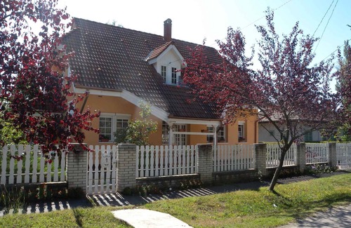 The holiday apartment is located in a single-family home built in 1994 and is furnished in a typical country style. The property is located in a holiday home area. Also due to its quiet and sunny location the domicile is popular. Available for shared use: sunbathing lawn, terrace, garden furniture and campfire site. The house is only for families.LocationBalatonboglár. The holiday apartement is located on a 370 sqm enclosed garden plot with meadow, flowers and shrubs, bordered by a fence. The landlord lives permanently in the house, but uses a seperate entrance. Access is via a side road (asphalted). Parking (for 2 cars) is available on the property. SpecialTV reception takes place via electric wire. Dogsnot allowed. DistancesShopping 500 m, restaurant 300 m, town center 500 m. Railway line 120 m. In summer: Balaton 150 m in Balatonboglár. DivisionHoliday apartment, 1 floor, 3 rooms (including 2 bedrooms), 70 sqm, in total 4 beds. RoomThe entrance to your holiday apartment is located upstairs and leads over an internal staircase. Bathroom with bathtub, 1 washbasin and window. Separate toilet with WC. Living room with sitting area, TV, dining area (4 seats) and access to the balcony (5 sqm, 1 table, 4 chairs). Bedroom with 1 double bed. Bedroom with 2 single beds. Kitchen with gas stove, oven, fridge (icebox) and coffee machine. Terms of lease and pricesIncluded in the priceparking place, electricity, water, final cleaning, bed linen. Side costs-Costs on the spot:/Obligatory:local tax by local tariff.Deposit:EUR 50,-/object.