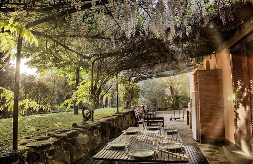 It is your ideal home if you are looking for a rustic and charming accommodation.Ideal for those who want to stay in total privacy and security, in contact with nature but close to everyone in the comfort of the countryDetached villa completely sanitized in a quiet and safe areaSelf check-in with key safe. The box code is sent later after booking2 bedrooms4 beds (possibility to add 1 extra bed)1 large communicating room with tub and showerEquipped kitchen and living roomPrivate swimming pool shared with Casa della MusicaAir conditioning and heatingLinen included (towels and sheetsWifi connectionBBQWashing machine and dishwasherCleaning service (with supplement)Large outdoor veranda with tables and chairsPrivate gardenAfter a day wandering around the cellars and discovering the hidden beauties of the Marche hills, the Glicini house is a romantic retreat in the countryside. The splendid veranda shaded by wisteria, from which this house takes its name, is ideal for relaxing and dining outdoors.Although part of a house complex, the size of the garden, the arrangement of plants and shrubs, and the paths between the greenery will protect your desire to be calm.The house has two bedrooms with a communicating bathroom accessible from both rooms, it can accommodate up to 5 people.The guests of the house have free access to the swimming pool and the use of the external bathroom and shower immersed in the bamboo grove.If you like walking, you can also walk to the ancient village of Ostra, which is about 1500 meters away, and go shopping in the small local supermarket. In the surroundings, there are numerous places where you can buy fresh vegetables and local products. Ending the day with a good glass of wine, in the suggestive setting of the hills, is the best you could wish for, the area is known for high quality wines, such as Lacrima di Morro d'Alba.Short description 1Number of kitchens : 1Other rooms : Veranda, garden and access to the poolSurroundingNearby sports facilities : FishingGarden and outdoorGarden facilities : GrillOn-site leisure facilities : Outdoor swimming pool shared use, Swimming poolService benefitsService facilities (may incur additional costs) : Breakfast, Chambermaid