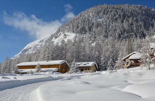 The flat is located on the first floor of the Chesa Formel. The building is located on the edge of the forest right at the entrance to Val Roseg. In the colder months, it is not uncommon to spot some wild animals in the neighbouring forest.
