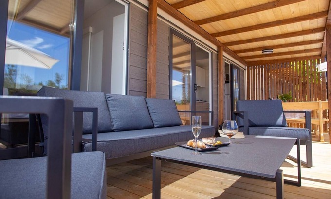 Top quality, richly equipped mobile home provide you with an intimate environment for the perfect pleasure and experience of a luxurious vacation on the island of Pag. The cottage has a private pool, terrace, sun deck, parking space and a fully equipped interior for your unique vacation. They are only 100 meters from Lastura Resort and a private beach.