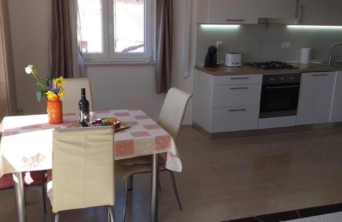 Apartments Dina are a unit house with three apartments for up to 14 people. Two of them are for up to 4 people, one is for up to 6 people. All apartments are comfortable, suitable also for families with small children. New sunny modern apartment near the center,Pula. It consists of one bedroom,kitchen with living room, toilet and beautiful garden with terrace! We assure you that our apartments is home away from home......we look forward to meeting you:)