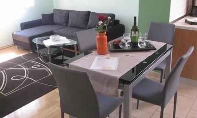 To the characteristics of the apartment belong two bedrooms,one bedroom with double bed and the other bedroom with two single beds, kitchen connect to living room with futon sofa for two, bathroom,terrace and nice garden with our own homemade vegetables, outdoor fireplace,free wi-fi ,digital and a SAT tv.