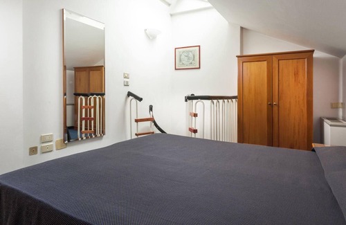One bedroom "duplex" apartment split on two levels, with lofted double bedroom accessible via inner spiral staircase, on the low level fully equipped kitchenette and living area with sofa-bed, bathroom with shower box, private equipped terrace, wi-fi, self adjustable a/c, flat screen tv-sat. Small sized pets welcome with extra charge. Laundry mat in common on the ground floor. This property is family-oriented, groups of youngsters are not admitted.