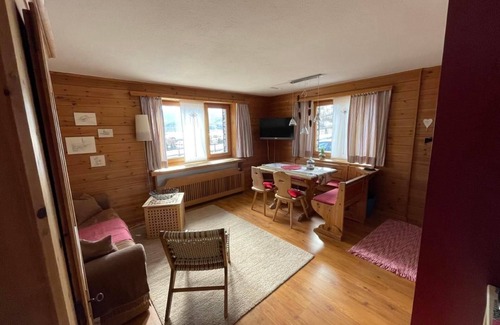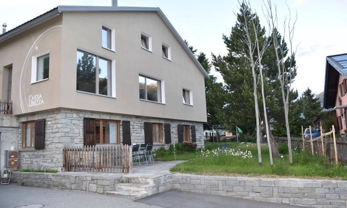 Quietly situated, cosy and well-kept 3.5 room ground floor flat for 4 persons. You can enjoy an unobstructed view of Celerina and the Bernina massif from the window or the beautiful garden seating area and can therefore plan your next excursion with the Rhaetian railway or the Engadin bus.