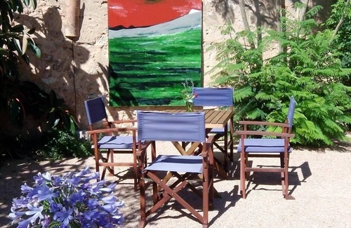 The historic property with its 450 m² of living space and an almost paradisiacal secluded c. 800 m² garden with a swimming pool was extensively renovated, modernised and converted into a small apartment building in September 2012, while maintaining the traditional Majorcan style. The Can Mavi has five spacious holiday apartments that are furnished in a functional way. The architecture of the building reflects the once stately Majorcan style and today combines the traditional building elements with modern facilities and all the amenities you could want for a relaxing and enjoyable stay. The large dining room on the ground floor with a table for up to ten people, an open fireplace and access to the garden, is available for use by all the tenants. It offers a lot of flair with its large palm trees, the big olive tree in the centre, the bougainvillea bushes and the small romantic fountain. The pool with its loungers and sunshades is also available for communal use. Incidentally, the reception room is also suitable as a training or meeting room.