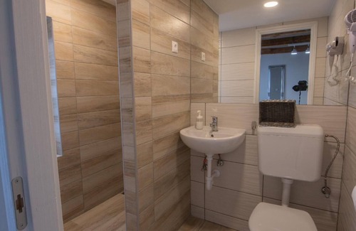Bath/WC: Shower; Sink; Toilet;