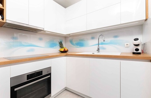 Holiday Apartment Taja is a modernly designed apartment located on the ground floor of a multi-unit house, just 100 meters from the beautiful beach in the picturesque village of Čižići on the island of Krk. With its carefully designed interior, spacious outdoor terrace, and private heated jacuzzi, it is the perfect choice for a relaxed and unforgettable holiday. The apartment, spanning 45 m², is tailored for a comfortable stay for up to six guests, combining elegance and practicality.