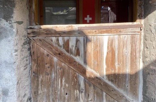 Inside, the holiday home is spread over three levels, each designed for maximum comfort. On the ground floor, which is underfloor heated, you will find a cosy double bedroom, a bathroom with shower, bidet, WC and washbasin, and a utility room with washing machine and dryer. Going up to the first floor, cosy spaces such as the living/dining room with Swedish wood-burning stove, Swisscom TV, and a modern open kitchen await you. The second floor offers a charming open mezzanine with a double bed, completing the interior of this charming dwelling.