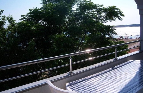 Each apartment has its own balcony with a beach and sea view, with seating. It also has a big shared terrace, an outdoor shower and a grill in the garden. The big table on the terrace is for at least ten people. Apart from the main driveway to the parking area with seven spaces, the site is completely fenced. Dogs do not have to be kept on the leash in the house and garden, unless there are several dogs in the house at the same time. Outside the site dogs must be kept on the leash. The owner offers jetski and boat hire, but you can also bring your own boat.