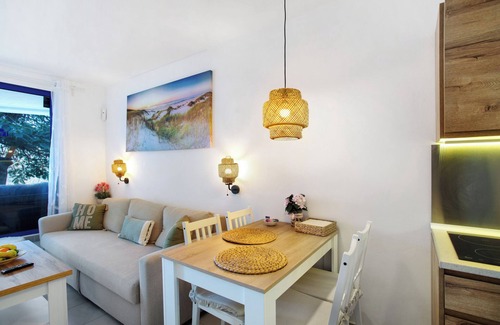 The accommodation offers a private outdoor area with a garden, covered terrace, barbecue and outdoor shower. There is also a shared outdoor area with a fenced pool and a children's pool. The property is located near the beach, and public transport links are within walking distance. The beach and water park are a short walk away, while Tauro Golf Course, Puerto de Mogán and Puerto Rico are only a 5-minute drive away.