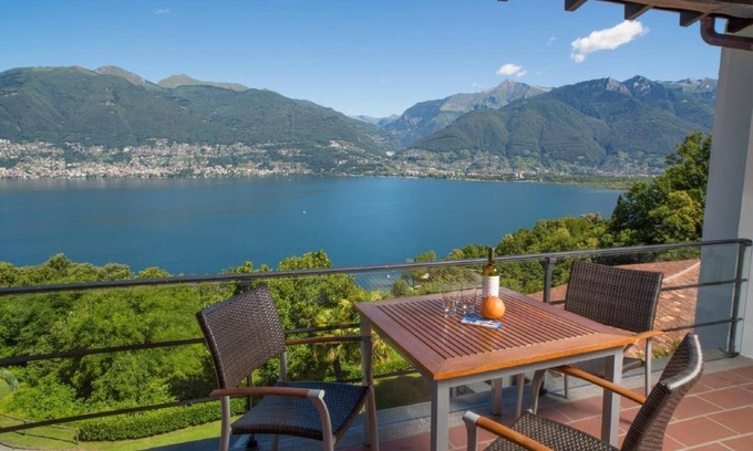 From the balcony there is a fantastic view of Lake Maggiore and the opposite shore with Ascona and Locarno and the surrounding mountains.