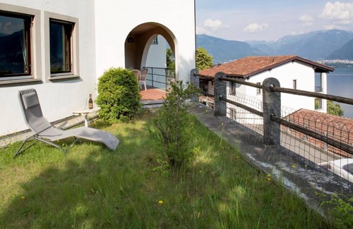 The cosy 2-room holiday flat with a covered terrace of 12 m² and a private garden of approx. 70 m² is located in the Casa Bianca house above Vira.