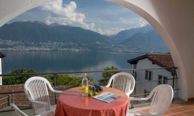 The house, built in the Ticino country house style, is part of the Residenza Viramonte holiday complex. Six houses are spread over a well-kept hillside plot of around 16,000 square metres. Due to its elevated position, flat number 13 offers a breathtaking view of Lake Maggiore and the opposite side of the lake from Locarno to Tenero.