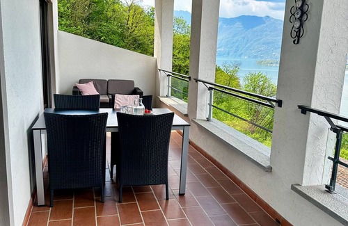A highlight is the spacious balcony (16m2) with a marvellous view of the lake. Here you can let your gaze wander over the glistening Lake Maggiore and the surrounding mountains, enjoy the warmth of Ticino during the day and the wonderful peace and quiet - thanks to the flat's location on the top floor and the secluded terrace, you have plenty of privacy. In the evening, round off the day with a glass of Merlot while the setting sun bathes the lake in golden and red colours.