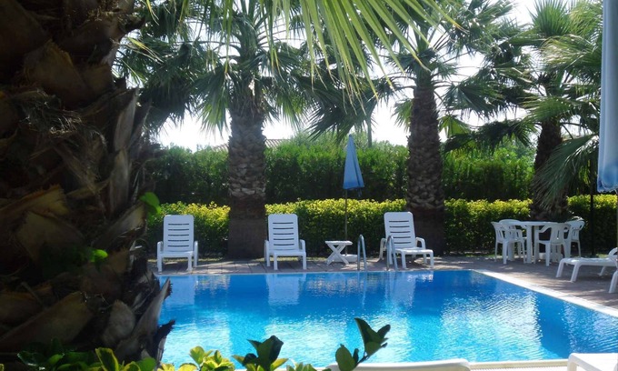 3 stars, reception, bar, coffee shop, pool bar and internet (WLAN). LocationMarina di Ascea, district Velia. The holiday apartement is located in a holiday complex, on a 4000 sqm enclosed garden plot with flowers and trees, bordered by a fence and a hedce. Access is via a side road (asphalted). Parking is available on the property. Specialair conditioning. Cold/hot air conditioning (individually adjustable)Facilities: baby cot, high chair and internet access (WLAN). TV reception takes place via satellite. TV channels only in local language. PoolAll pools are available for shared use. Outdoor pool (6.5 m x 15 m). Dogsnot allowed. DistancesShopping 150 m, restaurant 350 m, town center 1500 m. We are located in the heart of the Cilento National Park just 300 meters away. away from one of the most beautiful sandy beaches (soft and golden, 5 kilometers long) on the Cilento coast and a few steps from what was one of the most renowned cities of Magna Graecia, home of Parmenides and Zeno: Elea-Velia In summer: Bathing possibility 550 m in Marina di Ascea (beach 550 m in Marina di Ascea featuring sand). DivisionHoliday apartment, 1 floor, 2 rooms (including 1 bedroom), 50 sqm, in total 3 beds (including 1 additional bed). RoomThe entrance to your holiday apartment is located on different floors and leads over an internal staircase. Bedroom with 1 double bed and access to the balcony (covered, garden furniture, 1 table, 2 chairs). Eat-in kitchen with 1 additional bed on couch/sofa, sitting area, TV, dining area (4 seats) and access to the balcony (covered, garden furniture, 1 table, 2 chairs). Cooking nook in the kitchen-diner with electric stove (induction stove, 2 plates), fridge (icebox), microwave, coffee machine and access to the balcony. Bathroom with shower, 1 washbasin, WC, bidet, hairdryer and window. Terms of lease and pricesIncluded in the priceOutdoor pool, air conditioning, parking place, electricity, gas, water, final cleaning, breakfast, sunloungers at the pool, cleaning (daily), Bed linen (weekly change), hand towels (daily change), Wireless Internet access. Side costs-Costs on the spot:/Obligatory:final cleaning of the kitchen (if not performed by the tenant) 30 € per object per stay. dish towels to bring along. local tax by local tariff (if charged).On request:washing machine 5 € per stage of washing programme based on usage. bed linen 6 € per person per change. parking place (additionally) 5 € per car per day.Deposit:EUR 150,-/object